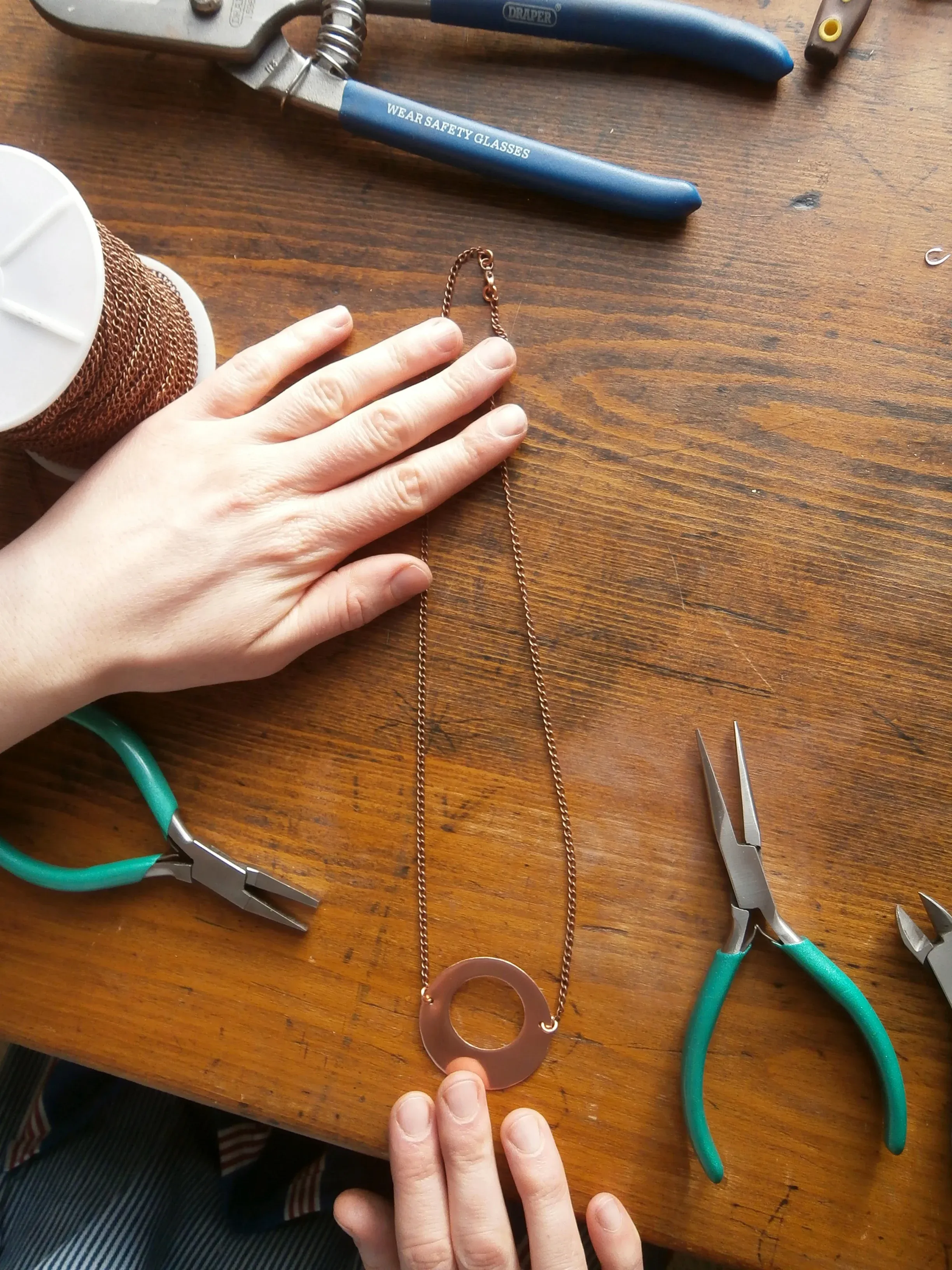 It’s fair to say that Laurie Yeomans is a multi-skilled individual. As well as honing her abilities as a jewellery maker, creating exquisite pieces mostly from recycled copper, she’s also a print designer, dress maker and barista. I can also vouch for her sandwich and cake making abilities.